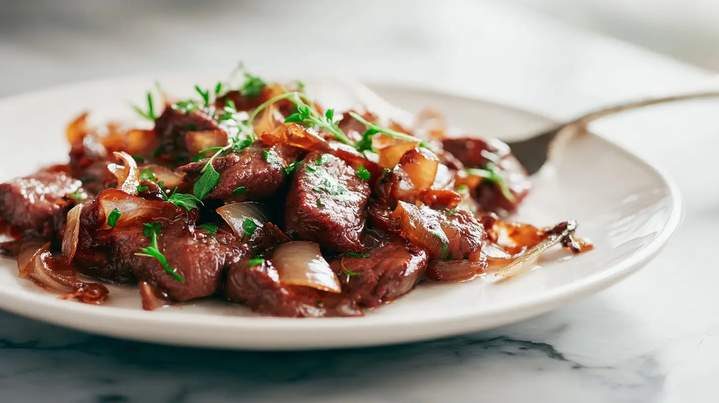 - Kypsennä 15-20 minuuttia, kunnes liha on kypsää ja sipulit pehmeitä. Sekoita puolivälissä.