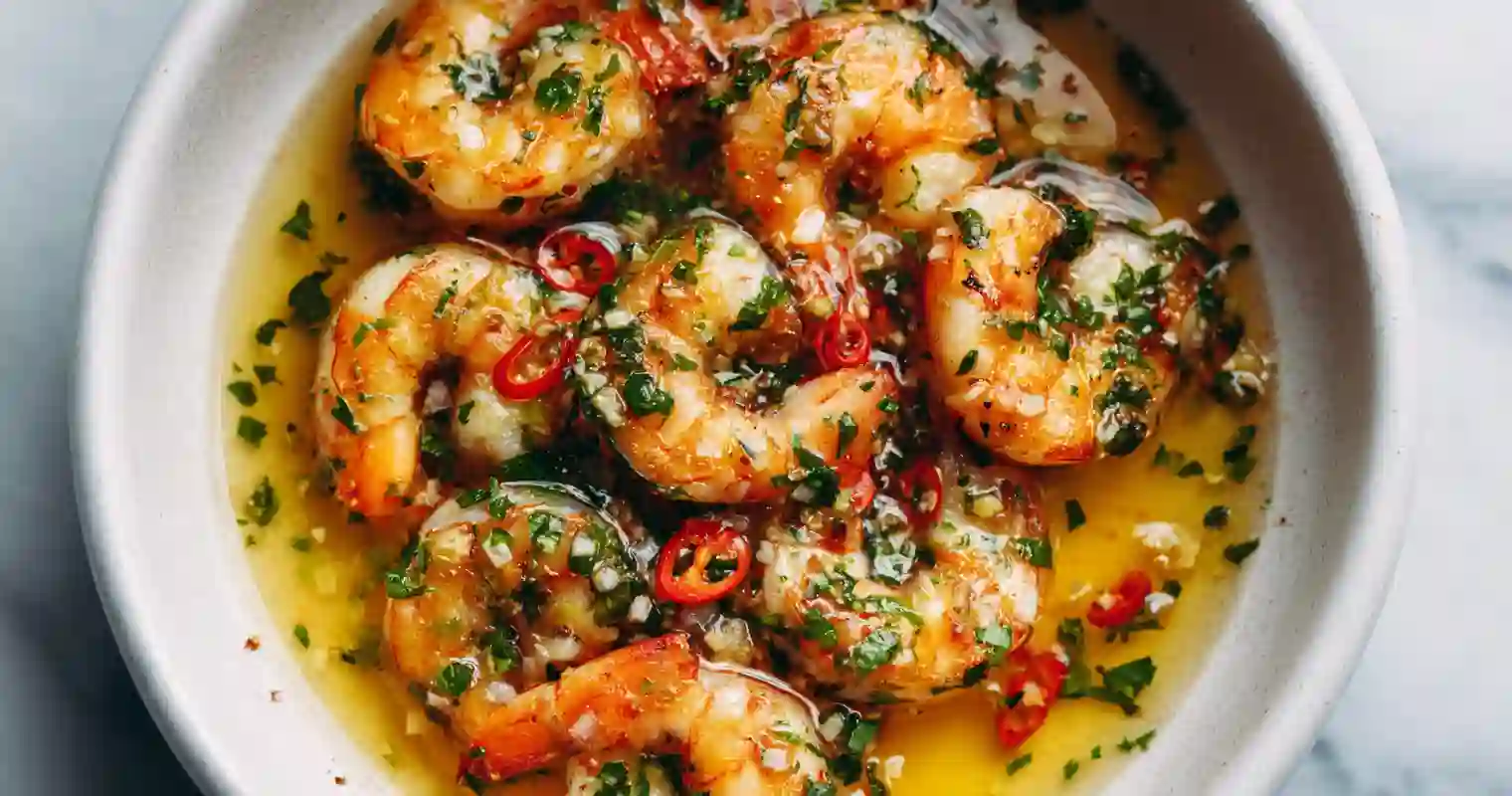 Nopea ja aromikas espanjalaistyylinen katkarapuresepti airfryerissa – valkosipulia, chiliä ja oliiviöljyä täydellisessä kesäyhdistelmässä.